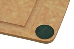 La Victorinox All-in-One 7.4127 es una tabla de cortar con unas dimensiones de 44,5 x 33 cm. La tabla de cortar es de Richlite marrón. Un material que consiste en una combinación de 65% de pulpa de madera con certificación FSC y 35% de resina fenólica. El resultado es una fina tabla de cortar con una superficie lisa, no porosa, resistente al calor, sin BPA e higiénica. La madera es lo suficientemente suave como para no dañar el filo del cuchillo y, al mismo tiempo, lo bastante dura como para evitar arañazos profundos,